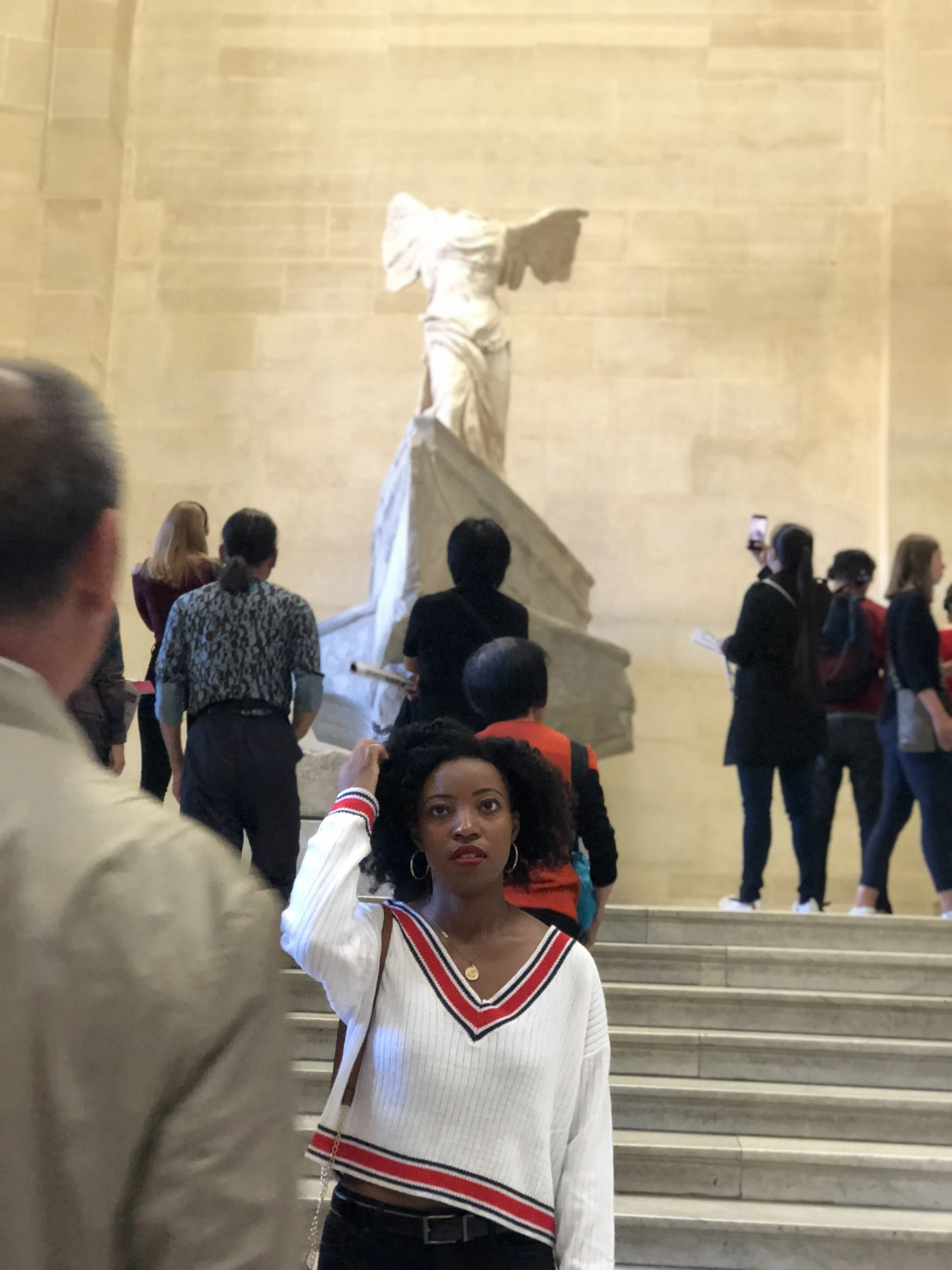 All you have to do to get a staircase to yourself in the Louvre is be black and sit down
